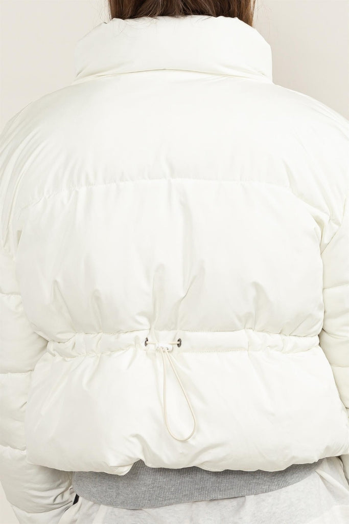 This quilted puffer jacket is the perfect blend of cozy and edgy. Featuring a stand collar and long sleeves, it offers a comfortable silhouette that’s both stylish and functional. The silver-toned zipper down the front adds a modern touch, ensuring you stay warm while looking chic. Pair it with high-waisted pants for a cute, retro vibe that’s perfect for any occasion. This versatile jacket is a must-have for your wardrobe!