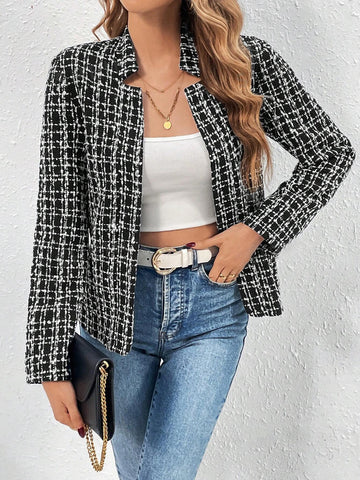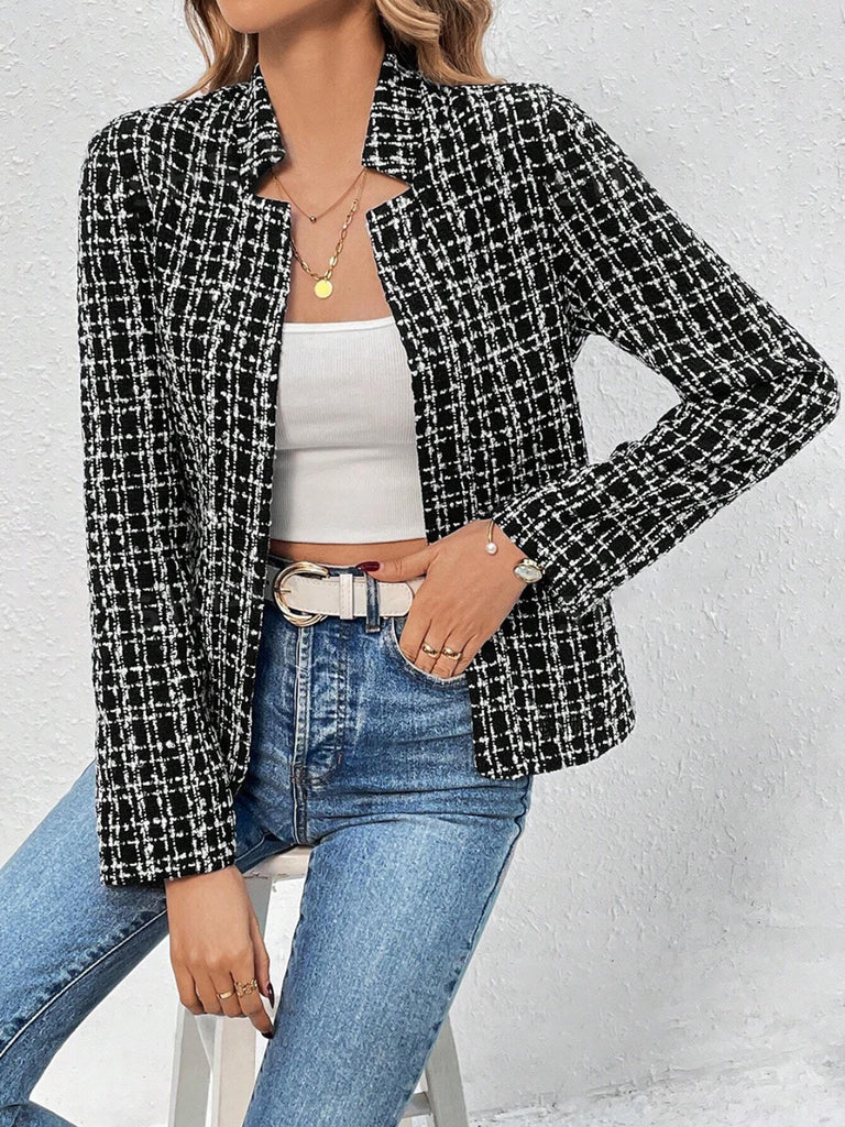 Plaid Open Front Long Sleeve Jacket