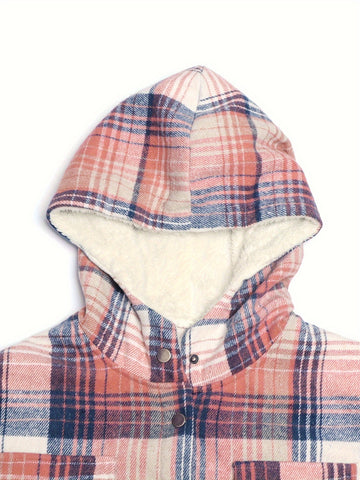 Plaid Snap Down Long Sleeve Hooded Outerwear