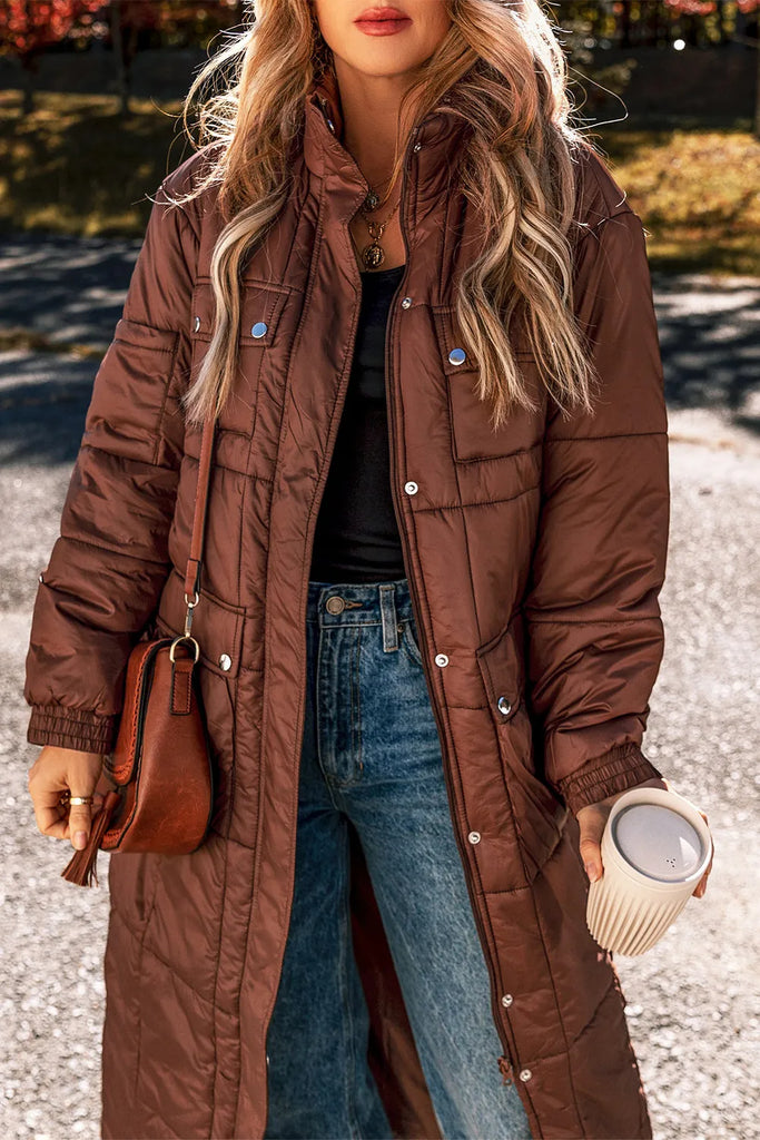 Pocketed Bubble Texture Long Sleeve Longline Winter Coat