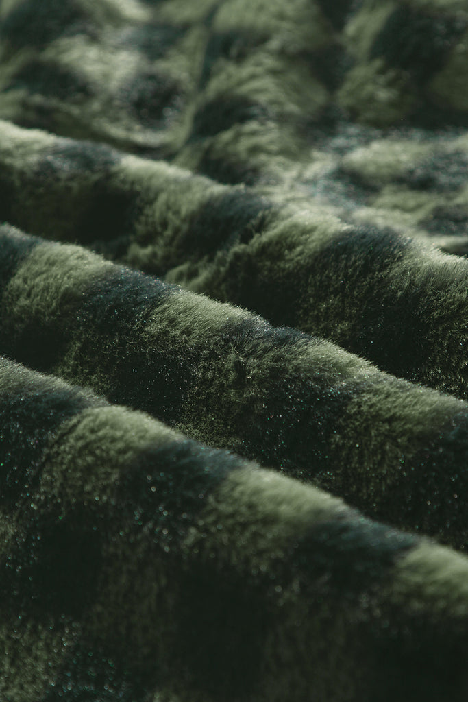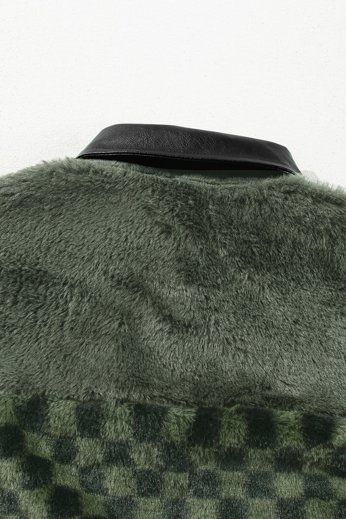 Pocketed Checkered Collared Neck Snap Down Jacket